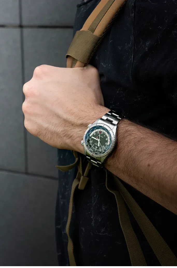 В стальном корпусе установлен швейцарский механизм AL-255 с питанием от батарейки (на основе Ronda 515.24H), который оснащен функцией GMT , то есть вторым часовым поясом в виде четвертой стрелки в 24-часовом формате и указателем даты в традиционном положении третьего часа. Стрелка GMT дополняется индикацией дня и ночи. Также имеется внутренний диск «Worldtimer», который приводится в действие заводной головкой в положении четвертого часа. Это позволяет считывать время в 24 городах мира .