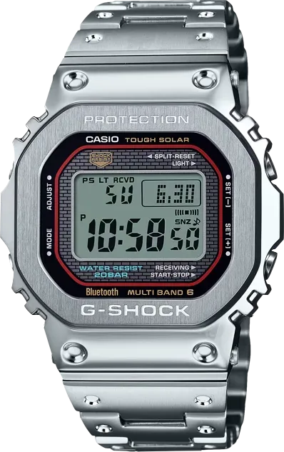 Внешний стальной корпус отполирован и выглядит хромированным, а на безеле сохранена сатинированная стальная текстура. Задняя крышка черная и защищена сверх-прочным DLC-покрытием. Внутри, гасящий любые удары, слой из материала Alpha Gel® и металлическая капсула с механизмом часов. Благодаря такой структуре инженеры Casio достигли абсолютной ударопрочности несмотря на использование в модели металла вместо привычного полимера.