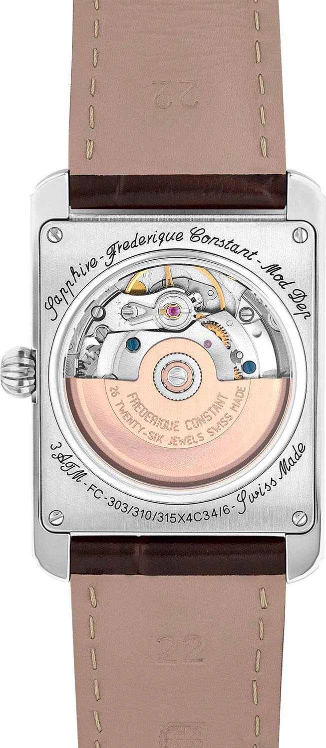 Окошко даты находится в положении 6 часов. Рифленая заводная головка. Прозрачная задняя крышка крепится на 4-х винтах. Удобный кожаный ремешок с классической застежкой.