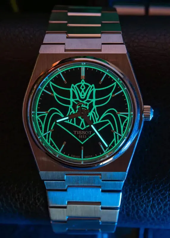 Стальной корпус c сатинированной поверхностью. Прямоугольные стрелки в стиле Baton. Накладные метки в виде штрихов. Метки и стрелки с люминесцентным покрытием, которое светится в темноте после непродолжительной зарядки на свету.